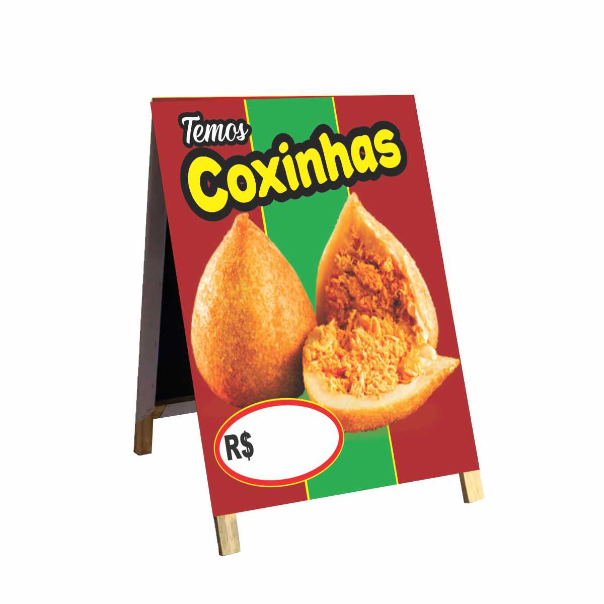 Cavalete Temos Coxinhas | Divulgação Prática e Criativa